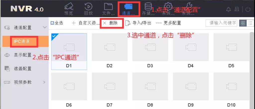 通道配置—IPC通道,选择设备,点击删除