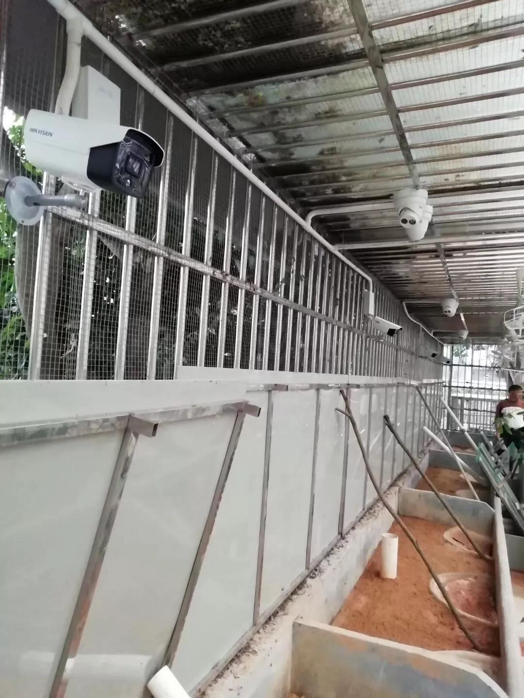 ▲点位安装在养殖区域防护铁栅栏上,每个区域安装2台智能警戒摄像机,划定警戒区域指定时间自动布防