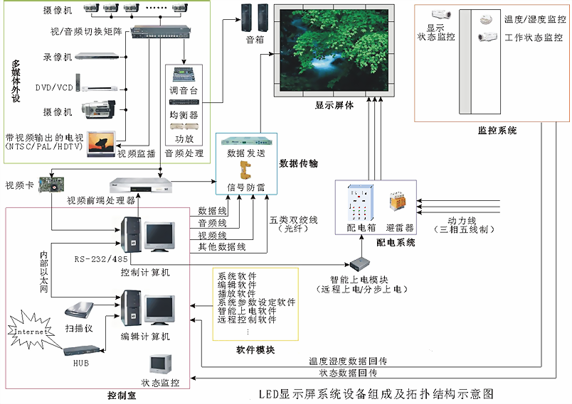 功能简介:由一个个小的LED模块面板组成的不同面积,用来显示文字、图像、视频等各种信息的大屏专业显示设备。LED电子显示屏集微电子技术、计算机技术、信息处理于一体,具有色彩鲜艳、动态范围广、亮度高、寿命长、工作稳定可靠等优点。LED显示屏广泛应用于商业传媒、文化演出市场、体育场馆、信息传播、新闻发布、证券交易等,可以满足不同环境的需要。主要分为大屏(LED显示屏、液晶拼接屏、投影)系统,图像处理(多屏拼接处理器、媒体矩阵、分配器)系统等。湖北蜜桃视频网站专业弱电工程:LED显示屏、LED屏、液晶拼接屏、投影融合,投影屏。