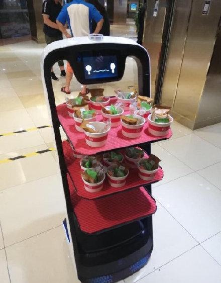 在疫情早期的隔离期间,就有公司研发出了“送餐”机器人,来给宾馆各个客房的密切接触者进行服务。
